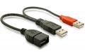 Dieses USB Y-Kabel von Delock dient zur zusätzlichen Stromversorgung von USB Geräten. Schließen Sie einfach den roten und den schwarzen Stecker an 2 freie USB Ports Ihres Systems und das Gerät an die USB Buchse des Adapters. Somit wird Ihr Gerät über 2 Quellen mit Strom versorgt, wobei der rote Anschluss die zusätzliche Stromzufuhr darstellt und diesen parallel zum schwarzen Daten/Strom Anschluss liefert.