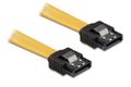 Dieses SATA Kabel von Delock dient zum internen Anschluss verschiedener SATA Geräte wie z.B. SATA Festplatten, SATA Controller Karte, etc . Zusätzliches Einrasten beim Anschließen der Kabel wird durch Metall Clips am SATA Stecker ermöglicht.