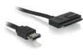 Mit diesem Anschlusskabel von Delock können Sie Ihre 2,5“ SATA Festplatte nun auch über den Power Over eSATA Port Ihres Notebooks oder PCs anschließen. Für diese Anwendung benötigen Sie kein zusätzliches Netzteil, da der Power Over eSATA Konnektor mit Hilfe der integrierten USB Schnittstelle Ihre Festplatte mit einer Spannung von 5V versorgt.