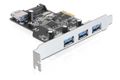 Die Delock PCI Express Karte erweitert Ihren PC um drei externe USB 3.0 Ports sowie einen internen USB 3.0 Port. Sie können an die Karte verschiedene USB Geräte, wie z. B. Docking Stationen, Card Reader, externe Gehäuse etc. anschließen.