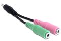 Mit diesem Adapter von Delock können Sie über die 3,5 mm Klinkenbuchse an Ihrem Computer oder Tablet z.B. ein Headset anschließen. Hierzu verbinden Sie einfach die Anschlüsse des Headsets an die farblich codierten Buchsen des Delock Adapters.