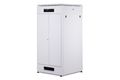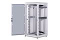 Die Netzwerkschränke der Unique Serie wurden für eine besonders komfortable und flexible Netzwerkverkabelung designt und produziert. Durchdachte Optimierungen bieten marktkonforme Stabilität bei maximaler Flexibilität. Ein modular, durch verschraubte 483 mm (19")-Blindplatten öffenbares Bodenchassis bietet ausreichend Platz für Kabel aller Art. Darüber hinaus befinden sich seitliche Kabeleinlässe mit Bürste jeweils oben und unten im Schrank, sowie ein weiterer im hinteren Bereich des Bodenchassis. Rückseitige Bürstenleisten ober- und unterhalb der Rücktür (ab 26HE), ermöglichen den Einsatz bei verschiedensten Anwendungsszenarien. Großzügige vertikale Kabelkanäle mit Kabelführungshilfen und Blende, verbaut in der Frontseite (ab 800 mm Schrankbreite), runden die vielfältigen Eigenschaften des Netzwerkschranks einwandfrei ab. Zwei Paar verkröpfte und galvanisch verzinkte, mit gegenläufig ablesbaren Höheneinheiten beschriftete 483 mm (19")-Profilschienen sind im Inneren verbaut. Sie lassen sich stufenlos verstellen und sind mit zusätzlichen Tiefenstreben im Schrank verbunden. Jeder Schrank ist eine robuste Stahlkonstruktion aus bis zu 1,5 mm starkem Stahlblech. Die Farbgebung erfolgt in Form von elektrostatischer Pulverbeschichtung in den Standardfarben Grau (RAL 7035) und Schwarz (RAL 9005). Modular abschließ- und abnehmbare Seitenwände sowie Türen verbessern die Zugänglichkeit. Ein Türanschlagswechsel kann vorgenommen werden. Des Weiteren sind die Schränke auf Grund der zerlegbaren Konstruktion bei Bedarf komplett demontierbar.