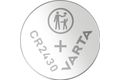 Varta -CR2430. Akku-/Batterietyp: Einwegbatterie, Batteriegröße(n): CR2430, Akku-/Batterietechnologie: Lithium. Höhe: 3 mm, Durchmesser: 2,45 cm, Gewicht: 4 g. Verpackungsbreite: 56 mm, Verpackungstiefe: 7,5 mm, Verpackungshöhe: 65 mm. Batterie Formfaktor: Knopf/Münze