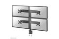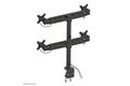 Die Neomounts Tischhalterung, Modell FPMA-D700D4, ist eine neig-, schwenk- und drehbar Tischhalterung für vier Flachbildschirme bis 30" (76 cm). Diese Halterung ist eine gute Wahl für platzsparende Platzierung auf Schreibtischen mittels einer Tischklemme. Neomounts neig-(180°), dreh- (360°) und schwenkbare (180°) Technologie ermöglicht es die Halterung auf jeden Betrachtungswinkel zu ändern, um vollumfänglich von den Möglichkeiten des Flachbildschirms zu profitieren. Die Halterung ist manuell höhenverstellbar von 0 bis 70 Zentimetern. Tiefe 15 Zentimetern. Eine einzigartige Kabeführung verdeckt und führt Kabel von der Halterung zum Flachbildschirm. Verstecken Sie Ihre Kabel um den Arbeitsplatz schön und ordentlich zu halten. Durch eine ergonomische Halterung können Nacken- und Rückenbeschwerden vermieden werden. Ideal für den Einsatz in Büros und auf Theken oder in einem Empfangsbereich. Neomounts FPMA-D700D4 hat einen Drehpunkt und eignet sich für Bildschirme bis 30" (76 cm). Die Tragfähigkeit dieses Produkts ist für zwei Bildschirme bis je 8 kg. Die Tischhalterung ist geeignet für Bildschirme mit VESA 75x75 oder 100x100 mm Lochmuster. Verschiedene andere Lochmuster können unter Verwendung von Neomounts Vesa-Adapterplatten abgedeckt werden. Das benötigte Befestigungsmaterial ist im Lieferumfang enthalten.
