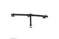 Die Neomounts Tischhalterung, Modell FPMA-D700DD3, ist ein schwenk- und drehbare Tischhalterung für drei Flachbildschirme bis 27" (69 cm). Diese Halterung ist eine gute Wahl für platzsparende Platzierung auf Schreibtischen mittels einem Standfuß oder einer Durchführung. Neomounts dreh- (360°) und schwenkbare (45°) Technologie ermöglicht es die Halterung auf jeden Betrachtungswinkel zu ändern, um vollumfänglich von den Möglichkeiten des Flachbildschirms zu profitieren. Die Halterung ist manuell höhenverstellbar von 34 bis 45 Zentimetern. Tiefe 7 Zentimetern. Eine einzigartige Kabeführung verdeckt und führt Kabel von der Halterung zum Flachbildschirm. Verstecken Sie Ihre Kabel um den Arbeitsplatz schön und ordentlich zu halten. Durch eine ergonomische Halterung können Nacken- und Rückenbeschwerden vermieden werden. Ideal für den Einsatz in Büros und auf Theken oder in einem Empfangsbereich. Neomounts FPMA-D700DD3 hat einen Drehpunkt und eignet sich für Bildschirme bis 27" (69 cm). Die Tragfähigkeit dieses Produkts ist für zwei Bildschirme bis je 8 kg. Die Tischhalterung ist geeignet für Bildschirme mit VESA 75x75 oder 100x100 mm Lochmuster. Verschiedene andere Lochmuster können unter Verwendung von Neomounts Vesa-Adapterplatten abgedeckt werden. Das benötigte Befestigungsmaterial ist im Lieferumfang enthalten.