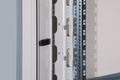 Vertikale Kabelkanäle mit Kabelführungshilfen und Blende verbaut in der Frontseite
