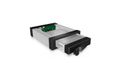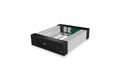 Das Gehäuse des Wechselrahmens ist nahezu komplett aus Aluminium, nur die Front- und Heckplatte sind aus Hartplastik. Aluminium ist sehr stabil, obwohl es sehr leicht ist, aber vor allem ist es für seine wunderbare Wärmeleitqualität bekannt. So spart man sich einen lauten Lüfter ohne die Festplatte zu schädigen. Optional lässt sich ein 12V Lüfter anschließen (nicht im Lieferumfang).