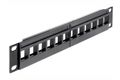 Dieses Patchpanel von Delock können Sie zum Einbau in einen 10" Geräteschrank verwenden. Durch die standardisierten Abmessungen ist es zur einfachen Snap-In Montage von 12 Keystone Modulen geeignet.