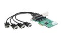 Die Delock PCI Express Karte erweitert Ihr System um vier externe High Speed RS-232 Anschlüsse. Nutzen Sie diese Karte für Anwendungen wie Messwerterfassung, Maschinensteuerung, Automatisierung, Entwicklung oder Kommunikation. Durch den umfangreichen Überspannungsschutz und den erweiterten Temperaturbereich ist diese Karte auch im industriellen Bereich einsetzbar. Angeschlossene Geräte können optional mit einer Spannung von 5 V oder 12 V versorgt werden.