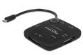 Mit diesem Delock Card Reader + Hub können Sie an einem Tablet oder Smartphone über den Micro-B USB OTG Port Speicherkarten lesen und beschreiben. Des Weiteren stehen Ihnen drei USB A Buchsen zur Verfügung, somit können Sie z. B. HDD, Speicherstick, Tastatur, Maus etc. mit Standard USB Anschluss an Handys, Smartphones, Tablets etc. mit OTG Unterstützung anschließen.
