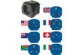 Weltreiseset zur Verwendung in über 150 Ländern. Die Stecker sind für größtmögliche Sicherheit geerdet und lassen sich bequem im mitgelieferten Stoffbeutel aufbewahren.