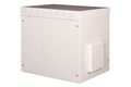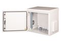 Die Industrie-Netzwerkschränke zur Wandmontage sind gemäß Schutzart IP55 speziell an die Bedürfnisse von rauen Umgebungen, besonders im Außenbereich, angepasst. Beste Leistung bieten die Wandgehäuse unter anderem durch das 3-Punkt-Verriegelungssystem mit abschließbarem Schwenkgriff und isolierten PG-Kabelverschraubungen. Integrierte Lüftungsfiltergehäuse sorgen für Frischlufteinlass (Schutz vor Wasser- und Staubeindringung gem. IP54). Anwendungsgebiete sind bspw. Außenbereiche, die den Umwelteffekten ausgesetzt sind (Regen, Staub, Hagel, Schnee, Spritzwasser). Für die Aufnahme eines Lüftermoduls wird das Dachchassis ebenfalls mit einem gefilterten Bereich versehen. Ein Paar galvanisierte, mit in beide Richtungen ablesbare Höheneinheiten beschriftete 483 mm (19")-Profilschienen sind im Inneren verbaut. Diese lassen sich in der Tiefe verstellen. Jeder Schrank ist eine robuste Stahlkonstruktion aus bis zu 2,0 mm starkem Stahlblech. Die Farbgebung erfolgt in Form von elektrostatischer Pulverbeschichtung in der Standardfarbe Grau (RAL 7035). Die Wandmontage erfolgt mittels beigelegter Haltewinkel. Optional lassen sich die Schränke mit einem Sockel als freistehende Lösung verwenden oder mittels Befestigungsset an Masten befestigen.