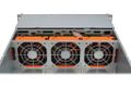 So bietet das IPC 3U-3416 die Möglichkeit maximal sechzehn 2.5" oder 3.5" Hot-Swap Festplatten, ein Slim DVD extern und drei 2.5" Festplatten intern einzubauen. Das IPC 3U-3416 hat fünf serienmäßig eingebaute Lüfter, wovon sich drei 120mm Lüfter direkt hinter den Laufwerkshalterungen befinden. Zwei weitere 60mm Lüfter, die sich im hinteren Teil des Gehäuses befinden, sorgen so zuverlässig für eine optimale Kühlung. Ein Deckel mit Snap-In Verschluss erleichtert den Zugang zu dem Innenleben im Servicefall.