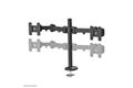 Die Neomounts Tischhalterung, Modell FPMA-D960DG, ist eine neig-, schwenk- und drehbar Tischhalterung für zwei Flachbildschirme bis 27" (69 cm). Diese Halterung ist eine gute Wahl für platzsparende Platzierung auf Schreibtischen mittels einer Tischplattenbohrung. Neomounts neig-(180°), dreh- (360°) und schwenkbare (180°) Technologie ermöglicht es die Halterung auf jeden Betrachtungswinkel zu ändern, um vollumfänglich von den Möglichkeiten des Flachbildschirms zu profitieren. Die Halterung ist manuell höhenverstellbar von 0 bis 45 Zentimetern und in der Tiefe einstellbar von 10 bis 43 Zentimetern. Eine einzigartige Kabeführung verdeckt und führt Kabel von der Halterung zum Flachbildschirm. Verstecken Sie Ihre Kabel um den Arbeitsplatz schön und ordentlich zu halten. Durch eine ergonomische Halterung können Nacken - und Rückenbeschwerden vermieden werden. Ideal für den Einsatz in Büros und auf Theken oder in einem Empfangsbereich. Neomounts FPMA-D960DG hat drei Drehpunkte und eignet sich für Bildschirme bis 27" (69 cm). Die Tragfähigkeit dieses Produkts ist für Bildschirme bis 8 kg. Die Tischhalterung ist geeignet für Bildschirme mit VESA 75x75 oder 100x100 mm Lochmuster. Verschiedene andere Lochmuster können unter Verwendung von Neomounts Vesa-Adapterplatten abgedeckt werden. Für curved Bildschirme empfehlen wir unsere FPMA-D960 PLUS-Modelle; Neomounts FPMA-D960DVBLACKPLUS eignet sich für Bildschirme bis 49" (124 cm). Die Tragfähigkeit dieses Produkts ist für Bildschirme bis 32 kg. Dadurch ist der Monitorarm hervorragend für Breitbildschirme und curved Bildschirme geeignet. Das benötigte Befestigungsmaterial ist im Lieferumfang enthalten.