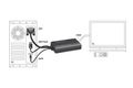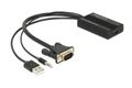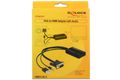 Dieser VGA zu HDMI Adapter von Delock dient zum Anschluss eines HDMI Displays an Ihrem PC bzw. Notebook. Durch die Verwendung des Klinkenkabels an Ihrem PC bzw. Notebook, können Sie über diesen Adapter auch das Audiosignal übertragen. Des Weiteren wird der Adapter über den USB Anschluss mit Strom versorgt und benötigt somit kein zusätzliches Netzteil.