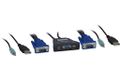 Der Anschluss des KVM erfolgt per USB (Tastatur/ Maus), 3,5mm Klinke (Audio) und DB15 (VGA Monitor) über die 2 integrierten Anschlusskabel, an die Computer.