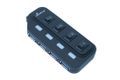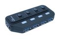 USB 3.0 Hub für Super-Speed-Datenübertragung mit vier Ports zum Anschluss von bis zu vier USB-Geräten (z.B. Maus, Tastatur, Drucker, externe Festplatte) an einen USB-Anschluss. An jedem Port befindet sich ein Schalter, sodass die einzelnen Verbraucher separat geschaltet werden können. Mit zusätzlichem Netzteil. Abwärtskompatibel zu USB 2.0.