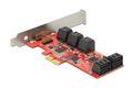Die Delock PCI Express Karte erweitert Ihren PC um zehn interne SATA Ports. Sie können an die Karte verschiedene Geräte wie z. B. Festplatten, DVD-Laufwerke etc. anschließen.