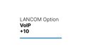 Die LANCOM VoIP +10 Option ermöglicht die Anmeldung von 10 weiteren internen VoIP-Teilnehmern mit eigenen Rufnummern an einem LANCOM VoIP-Router. Dank des additiven Lizenzmodells lassen sich bis zu 40 VoIP-Rufnummern vergeben - ideal für eine flexible Erweiterung der Telekommunikationsinfrastruktur und die schrittweise Umstellung von ISDN/Analog- auf VoIP-Telefonie.