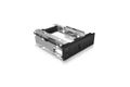 Bei diesem trägerlosen Wechselrahmen für Festplatten werden keine Werkzeuge und Schrauben zum Einbau der Festplatten benötigt. Einmal in einem freien 5,25" Schacht eingebaut einfach die Frontklappe öffnen, Festplatte einsetzen und die Klappe wieder schließen. Fertig.