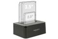 Diese HDD Dockingstation von Delock dient zum externen Anschluss von zwei 2.5″ oder 3.5″ SATA HDDs über die USB Schnittstelle. Durch diese Lösung benötigen Sie kein externes Gehäuse, da die HDD direkt in die Dockingstation eingesetzt wird. Zudem ermöglicht die Klon Funktion, dass der Festplatteninhalt von einer Festplatte auf eine andere Festplatte kopiert werden kann ohne Verwendung eines PCs.