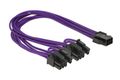 Dieses Delock Stromkabel dient zur Stromversorgung von PCI Express Grafikkarten, die eine hohe Leistungsaufnahme haben und zwei 8 Pin bzw. zwei 6 Pin Stromanschlüsse besitzen. An den beiden 8 Pin Steckern können zwei Pins vom Stecker getrennt werden, dadurch erhalten Sie den 6 Pin PCIe Anschluss.