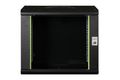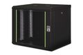 Die Netzwerkschränke zur Wandmontage der Unique Serie wurden für eine besonders komfortable und flexible Netzwerkverkabelung entwickelt. Im Dach eines jeden Schrankes befindet sich ein aufschiebbarer Kabeleinlass mit Moosgummidichtung. Die Rückwand und das Bodenblech sind ausgestattet mit ausgestanzten Kabeleinlässen mit Kunststoffabdeckung. Für die Aufnahme eines Lüftermoduls wird das Dachchassis ebenfalls mit einem ausgestanzten Bereich versehen. Zwei Paar galvanisierte, mit in beide Richtungen ablesbare Höheneinheiten beschriftete 483 mm (19")-Profilschienen sind im Inneren verbaut. Diese lassen sich in der Tiefe verstellen. Jeder Schrank ist eine robuste Stahlkonstruktion aus bis zu 1,5 mm starkem Stahlblech. Die Farbgebung erfolgt in Form von elektrostatischer Pulverbeschichtung in den Standardfarben Grau (RAL 7035) und Schwarz (RAL 9005). Modular abschließ- und abnehmbare Seitenwände sowie die abschließ- und abnehmbare Fronttür, verbessern die Zugänglichkeit. Ein Türanschlagswechsel kann vorgenommen werden. Die Wandmontage erfolgt in zwei einfachen Arbeitsschritten: Die Rückwand des Gehäuses wird an die Wand geschraubt und im Anschluss mit dem Gehäuse verbunden. Mit optional erhältlichen Nivellierfüßen oder Rollen, können die Wandgehäuse der Unique Serie ebenfalls freistehend verwendet werden.