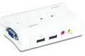 - 2-facher PS/2-KVM-Umschalter mit je einem Mikro-/Lautsprecherausgang.