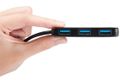 Transcends SuperSpeed USB 3.0-Hub eignet sich ideal zur Verwendung mit Ultrabooks oder extra dünnen und leichten Laptops. Der Hub erweitert einen einzigen USB 3.0-Port auf insgesamt vier Steckplätze, um mehrere Geräte gleichzeitig über die schnelle USB3.0 Schnittstelle betreiben zu können. Da er durch das eingebaute Kabel mit Strom versorgt wird, benötigt er keinen zusätzlichen Stromadapter. Gleichzeitig macht ihn sein kompaktes und leichtes Design zum perfekten Begleiter für unterwegs.