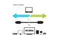 Dieses Feature stellt die optimale Leistung zwischen den angeschlossenen Produkten her. Unterstützt bis zu 4K 60Hz UHD Video, USB 3.1 SuperSpeed+ Daten und bis zu 10Gbps, sowie bis zu 5A Ausgangs- oder eine maximale Ladekapazität von 100 Watt zum Laden oder Betrieb Ihres USB Typ-C fähigen Notebooks, Tablets oder Smartphones. Für Video ist DisplayPort™ Alt Mode Unterstützung bei der Quelle erforderlich.
