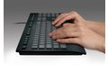 Die GS-zertifizierte kabelgebundene Tastatur K280e erleichtert dank des belastbaren verstärkten Gehäuses und Tasten, die auf bis zu zehn Millionen Anschläge ausgelegt sind, sowie Spritzwasserschutz über Jahre hinweg den Büroalltag. Hinzu kommt der hochwertige, gepolsterte Tastenaufdruck mit UV-Beschichtung. Die große, komfortable Handballenauflage und die nahezu geräuschlosen, flachen Tasten bieten zusätzlichen Komfort und ermöglichen leises Tippen. Das elegante Design macht die Arbeit im Büro zur Freude. Dank Plug&Play über USB ist die Tastatur sofort einsatzbereit – keine Softwareinstallation erforderlich. Tastatur in Standardgröße mit Sondertasten: Alle Steuerungsfunktionen wurden so angeordnet, dass sie leicht und intuitiv erreichbar sind. Das LED-Benachrichtigungscenter zeigt den Tippmodus an: Feststelltaste, Scrollen, Num-Taste.