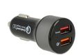 Dieses Navilock USB Kfz Ladegerät kann verwendet werden, um zwei USB Geräte mit Strom zu versorgen. Ein USB Port ist mit Qualcomm Quick Charge 3.0 Technologie ausgerüstet, dadurch können unterstützte Geräte bis zu 4 x schneller geladen werden. Der zweite USB Port stellt bis zu 2,4 A mit intelligenter Ladetechnik für konventionelle Geräte zur Verfügung.