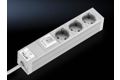 Die Steckdosenleisten sind in verschiedenen Ländervarianten mit unterschiedlichen Funktionselementen lieferbar. Besonderes Augenmerk wurde auf eine praxisgerechte und universelle Befestigung gelegt: Mit einem in vier Positionen einsetzbaren Winkel wird eine variable Befestigungsmöglichkeit geschaffen. So kann z. B. die 482 mm lange Steckdosenleiste wahlweise an 482,6 mm (19")-Profilschienen, am 19"-Montagerahmen, am Gehäuserahmen oder im hinteren Bereich der Wandverteiler montiert werden. Ohne zusätzliches Befestigungszubehör kann die Steckdosenleiste an allen Profilen mit 25 mm-Maßraster eingesetzt werden. Das erleichtert enorm die Auswahl, bietet zusätzliche Flexibilität und spart zudem Lagerhaltung. Auch an die Kabelführung der Zuleitung wurde gedacht, bei Montage im 482,6 mm (19")-Profil ist ausreichend Platz, um die Zuleitung knickfrei zwischen Steckdosenleiste und Profilschiene zu führen. Durch die Anordnung der Dosentöpfe im 45°-Winkel ist der uneingeschränkte Einsatz von Winkelsteckern möglich.
