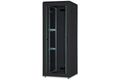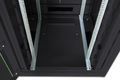 Die Netzwerkschränke der Unique Serie wurden für eine besonders komfortable und flexible Netzwerkverkabelung entwickelt. Mit Bürsten ausgestattete Einlässe im Dach- und Boden (ab 26HE und 800 mm Schrankbreite), ein aufschiebbarer Einlass im Bodenchassis mit Moosgummidichtung sowie rückseitige Bürstenleisten ober- und unterhalb der Rücktür (ab 26HE), ermöglichen einen vielseitigen Einsatz bei verschiedensten Anwendungsszenarien. Vertikale Kabelführungskanäle mit Blende, installiert neben den Profilschienen (ab 800 mm Schrankbreite), runden das Design ab. Ein abgesetzter, abnehmbarer Deckel mit Lüftungsschlitzen sorgt für eine verbesserte Luftzirkulation. Dieser sitzt über einer speziellen Konstruktion für die einfache Aufnahme eines Lüftermoduls. Zwei Paar galvanisierte, mit in beide Richtungen ablesbare Höheneinheiten beschriftete 483 mm (19")-Profilschienen sind im Inneren verbaut. Sie lassen sich in der Tiefe verstellen und sind mit zusätzlichen Tiefenstreben im Schrank verbunden. Jeder Schrank ist eine robuste Stahlkonstruktion aus bis zu 1,5 mm starkem Stahlblech. Die Farbgebung erfolgt in Form von elektrostatischer Pulverbeschichtung in den Standardfarben Grau (RAL 7035) und Schwarz (RAL 9005). Modular abschließ- und abnehmbare Seitenwände sowie Türen verbessern die Zugänglichkeit. Ein Türanschlagswechsel kann vorgenommen werden. Des Weiteren sind die Schränke auf Grund der zerlegbaren Konstruktion bei Bedarf komplett demontierbar.