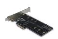 Die KT015 Karte bietet die Möglichkeit je eine M.2 PCIe SSD sowie M.2 S-ATA SSD (je Breite 22mm / Länge 42, 60 oder 80mm) in ein normales PC-Gehäuse einzubauen. Die Karte wird über eine PCIe X4 Schnittstelle betrieben und bietet für die PCIe SSD eine besonders schnelle Datenübertragung von bis zu 3938MB/s!