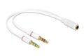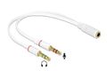 Dieser Headset Adapter von Delock ermöglicht die Verwendung eines iPhone Headsets mit 3,5 mm 4 Pin Klinkenstecker an Ihrem Computer oder Notebook mit zwei 3,5 mm 3 Pin Klinkenbuchsen.