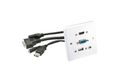 Der Befestigungsabstand der beiden Schrauben beträgt 60mm, passend für die AP-Dosen der modularen Serie mit 86x86mm Kunststoff-Abdeckplatte, weiß, ca. 86mm x 86mm x 35mm, mit 2 Befestigungsschrauben Platzbedarf an der Rückseite in der Dose ca. 30mm Tiefe HDMI Typ A Buchse zur Befestigung von HDMI-Kabeln, innen mit kurzer Kabelpeitsche mit HDMI Typ A Buchse. Mit LINDY HDMI Aktivkabeln oder Extendern/Repeatern kombinierbar für größere Distanzen VGA HD15 Buchse zur Befestigung von VGA-Kabeln, innen mit kurzer Kabelpeitsche mit HD-15 Buchse USB Typ A Buchse, innen mit kurzer Kabelpeitsche mit Typ A Buchse (Beachten Sie die maximale USB Kabel-Segmentlänge von 5m! Mit USB Aktivverlängerungen erweiterbar.) 3,5mm Audio-Stereobuchse, innen mit kurzer Kabelpeitsche mit 3,5mm Buchse