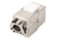 Das geschirmte CAT 6A Keystone Modul-Set DN-93617 von DIGITUS® überzeugt durch zukunftsorientierte Standards und High-End Qualität für Ihr Netzwerk. Die Module besitzen eine 360° Schirmkontaktierung, einen Rasthebel und einen wiederverschliessbaren, intelligenten Kabelmanager zur Zugentlastung und Kabelfixierung. Die kompakte Bauform erlaubt eine Reiheninstallation in 483 mm (19“) 1HE Panel. Die werkzeugfreie Installation erfolgt über LSA-Leisten, farbcodiert nach EIA/TIA 568 A&B. Durch seine kompakte Bauform passt das Modul außerdem in designkompatible modulare Anschlussdosen.