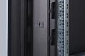 Die Netzwerkschränke der Unique Serie wurden für eine besonders komfortable und flexible Netzwerkverkabelung designt und produziert. Durchdachte Optimierungen bieten marktkonforme Stabilität bei maximaler Flexibilität. Ein modular, durch verschraubte 483 mm (19")-Blindplatten öffenbares Bodenchassis bietet ausreichend Platz für Kabel aller Art. Darüber hinaus befinden sich seitliche Kabeleinlässe mit Bürste jeweils oben und unten im Schrank, sowie ein weiterer im hinteren Bereich des Bodenchassis. Rückseitige Bürstenleisten ober- und unterhalb der Rücktür (ab 26HE), ermöglichen den Einsatz bei verschiedensten Anwendungsszenarien. Großzügige vertikale Kabelkanäle mit Kabelführungshilfen und Blende, verbaut in der Frontseite (ab 800 mm Schrankbreite), runden die vielfältigen Eigenschaften des Netzwerkschranks einwandfrei ab. Zwei Paar verkröpfte und galvanisch verzinkte, mit gegenläufig ablesbaren Höheneinheiten beschriftete 483 mm (19")-Profilschienen sind im Inneren verbaut. Sie lassen sich stufenlos verstellen und sind mit zusätzlichen Tiefenstreben im Schrank verbunden. Jeder Schrank ist eine robuste Stahlkonstruktion aus bis zu 1,5 mm starkem Stahlblech. Die Farbgebung erfolgt in Form von elektrostatischer Pulverbeschichtung in den Standardfarben Grau (RAL 7035) und Schwarz (RAL 9005). Modular abschließ- und abnehmbare Seitenwände sowie Türen verbessern die Zugänglichkeit. Ein Türanschlagswechsel kann vorgenommen werden. Des Weiteren sind die Schränke auf Grund der zerlegbaren Konstruktion bei Bedarf komplett demontierbar.