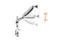 Die Desktophalterung bietet Ihnen die Möglichkeit, Monitore von 15" - 32" individuell auszurichten. Schwenken, Neigen und Drehen des Monitors ist möglich. Die integrierte Gasdruckfeder erleichtert Ihnen die Höhenverstellung.