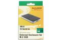 Dieses Gehäuse von Delock ermöglicht den Einbau einer M.2 SSD im 2242 und 2230 Format, und kann via USB Typ-A an einen PC oder ein Notebook angeschlossen werden. Mit Hilfe der Tasten auf der Oberseite ist es möglich eine verschlüsselte Partition auf dem eingesetzten Speicher zu erstellen.