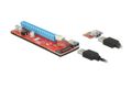 Die PCI Express Riser Karte von Delock kann in einen beliebigen PCI Express x1 Steckplatz auf dem Mainboard eingesteckt werden. Der x16 PCI Express Slot kann dann an einer anderen Position im Gehäuse montiert werden. Damit kann in jedem einzelnen PCIe Slot eines Mainboards eine Grafikkarte betrieben werden, auch wenn die Grafikkarte breiter als ein einzelner Steckplatz ist. Durch den Einsatz von mehreren Riser Karten können auf einem Mainboard gleichzeitig mehrere Grafikkarten betrieben werden, z. B. zum Mining von Kryptowährungen wie Bitcoin, Ethereum oder Zcash.