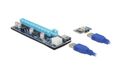 Die PCI Express Riser Karte von Delock kann in einen beliebigen PCI Express x1 Steckplatz auf dem Mainboard eingesteckt werden. Der x16 PCI Express Slot kann dann an einer anderen Position im Gehäuse montiert werden. Damit kann in jedem einzelnen PCIe Slot eines Mainboards eine Grafikkarte betrieben werden, auch wenn die Grafikkarte breiter als ein einzelner Steckplatz ist. Durch den Einsatz von mehreren Riser Karten können auf einem Mainboard gleichzeitig mehrere Grafikkarten betrieben werden, z. B. zum Mining von Kryptowährungen wie Bitcoin, Ethereum oder Zcash.