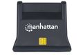 Smartcard-Technologie findet man heute in zahlreichen Anwendungen: im Sicherheitsbereich, bei Finanztransaktionen, in der Medizin, bei Treueprogrammen im Handel, an Mautstationen, bei der Zeiterfassung und vielem mehr. Kontaktgebundene Chipkarten können einfach in das Manhattan Smartcard-Lesegerät eingelegt und die hinterlegten Daten somit zuverlässig zwischen Karte und Host-PC ausgetauscht werden. Dies bietet deutlich mehr Sicherheit und Schutz als Karten mit Magnetstreifen.
