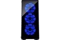 Eine durch drei blaue Argus L-12025 LED-Lüfter beleuchtete Front macht das CXC2 Gehäuse zu einem wahren Eye-Catcher. Die Front besteht aus Tempered Glass, mit trendigem Honeycomb-Muster dahinter, und wird durch ein Fensterseitenteil aus Acrylglas ergänzt. Platz und Anschlussmöglichkeiten für weitere Lüfter, eine wahlweise 120mm oder eine 240mm Wasserkühlung sowie diverse Festplatten finden sich im geräumigen Innenraum des CXC2 vor.