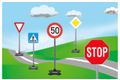 Stop, Fußgängerüberweg, Höchstgeschwindigkeit 50, Achtung, Vorfahrtstraße