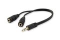 Das equip® 3,5mm Slim Stereo Splitter Y-Kabel ist mit einem 3,5mm Stereo Klinkenstecker und zwei 3,5mm Stereo Klinkenbuchsen ausgestattet. Damit schließen Sie an einem Kopfhörerausgang gleichzeitig zwei Kopfhörer an. Der besonders kompakte Stecker eignet sich besonders für Mobilgeräte, wie iPod®, iPhone®, iPad® und MP3-Player, die mit einer Schutzhülle versehen sind. Eine praktische und kostengünstige Audio-Lösung.