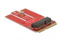 An diesen Adapter von Delock kann ein M.2 Modul im 2242, 2230, 3042 oder 3030 Format angeschlossen werden. Der Adapter wird über die Mini PCIe Schnittstelle in das System eingebunden. Durch die Sollbruchstellen lässt sich der Adapter von full size auf half size verkürzen.