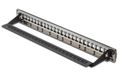 DIGITUS® Modulare Patchpanel wurden speziell für die 19" Schrankinstallation und für die Montage mit DIGITUS® Keystone Jacks entwickelt. Das modulare Patchpanel ist in den Farben Grau RAL 7035 und Schwarz RAL 9005 erhältlich. Das Material besteht aus SPCC, 1,55 mm kaltgerolltem C-Stahl in Einhergehung mit JIS G3141-1996. Die Vorderseite des Patchpanels ist aus ABS Hochimpakt UL-94V-o hergestellt. Die hintere Hilfsschiene mit speziell designten Kabelbindungspositionen wird als Tool zum Einrasten für eine einfache Installation geliefert.