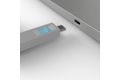 Das USB Port Schloss setzt sich aus einem Schlüssel und einem Schloss zusammen. Stecken Sie das Schloss in den USB Port und lösen Sie die Verriegelung. Das Schloss sitzt nun fest im USB Port. Zum Entriegeln stecken Sie den Schlüssel in das Schloss, dann kann es einfach wieder entfernt werden.